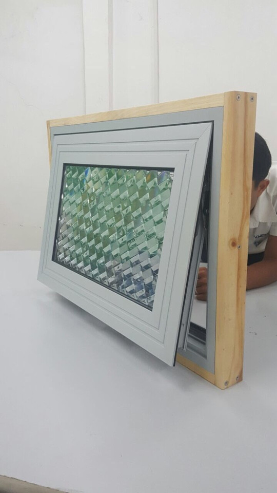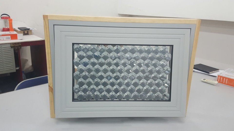Thiết kế Curtain tường dựa trên bảng điều khiển phản xạ retro lăng trụ nơi mà các tế bào năng lượng mặt trời đang hướng lên trên để cải thiện thu hoạch năng lượng mặt trời.