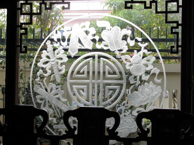 Kính điêu khắc nghệ thuật là loại kính với các đường nét, chi tiết trên kính được điêu khắc nổi một cách tỉ mỉ, sắc nét sau đó được phun màu lên để tạo nên màu sắc sinh động cho kính.